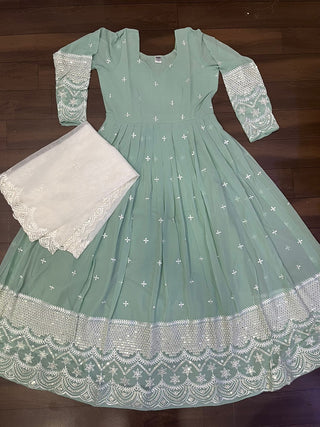 2-4 Days Delivery! For Women Party Wear Gown Kurtis Suit Faux Georgette with Thread & Sequins Embroidery Work, Listing ID: 9503809175834