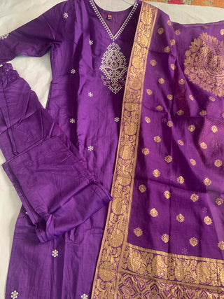 Varman Dresses For Women Party Wear Gown Kurtis Suit Cotton Silk with Mirror work Traditional Purple Color , Listing ID: 9468703473946
