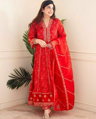 2-3 Days Delivery! Dresses For Women Party Wear Gown Kurtis Suit Georgette with Embroidery Work Traditional Red Color, Listing ID: 8880813998362