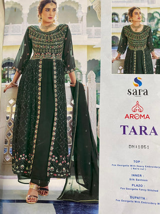 1-4 Days Delivery! Sara Aroma Style Modal Foux Georgette Naira Cut Kurti, Bottom, Dupatta Set with Heavy Embroidery Work, Listing ID: 9864362131738
