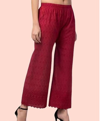 2-3 Days Delivery! Chicken Palazzo Embroidered Maroon ankle pant
