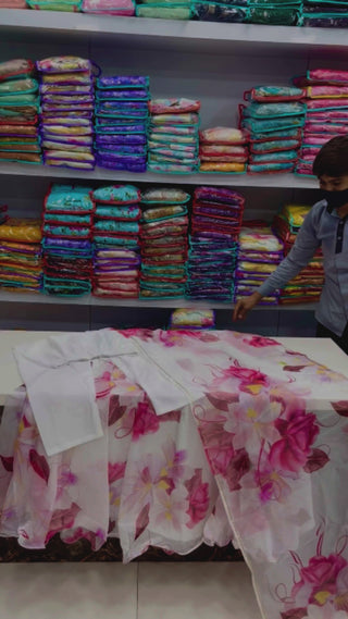 Ship From India! Organza Taby Silk Heavy Quality Fabric With Digital Print Gown, Full Sleeve, Listing ID: PRE8971799134490