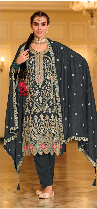 Ship From India! Varman Indian Pakistani Salwar Kameez Suit Women Ready to Wear Chinon Fabric Party Wear 3 Pieces Set, Listing ID: PRE8997197709594