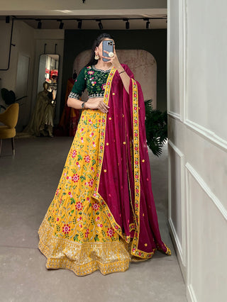Ship From India! Myra Silk Lehenga & Blouse With Maslin Crochet Printed Dupatta Set, Listing ID: PRE8701945905434