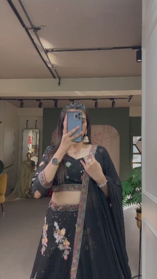 Ship From India! Varman Lehenga For Women Ready To Wear Lehenga Choli Georgette Sequins, Thread Embroidery Party Wear Black Color Fully Stitched Blouse, Listing ID: PRE8944241246490