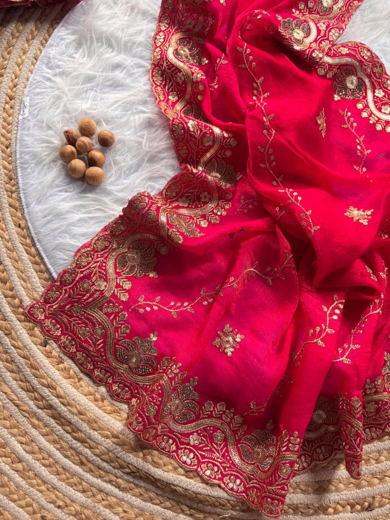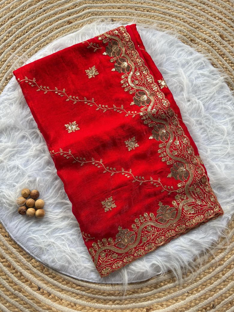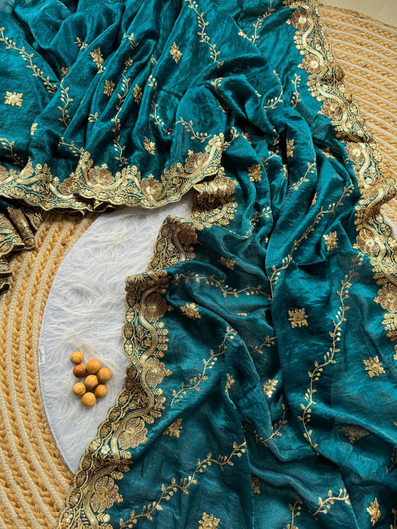 Get ready to dazzle in our Luxurious Soft Silk Sarees! Crafted from a soft silk blend with a rich, lustrous finish, these sarees showcase all-over golden floral motifs with delicate vine work. The broad zari border with intricate patterns adds a touch of elegance and sophistication, perfect for weddings and festive occasions. Complete your look with a beautifully stitched blouse in a contrasting color and stand out in style.