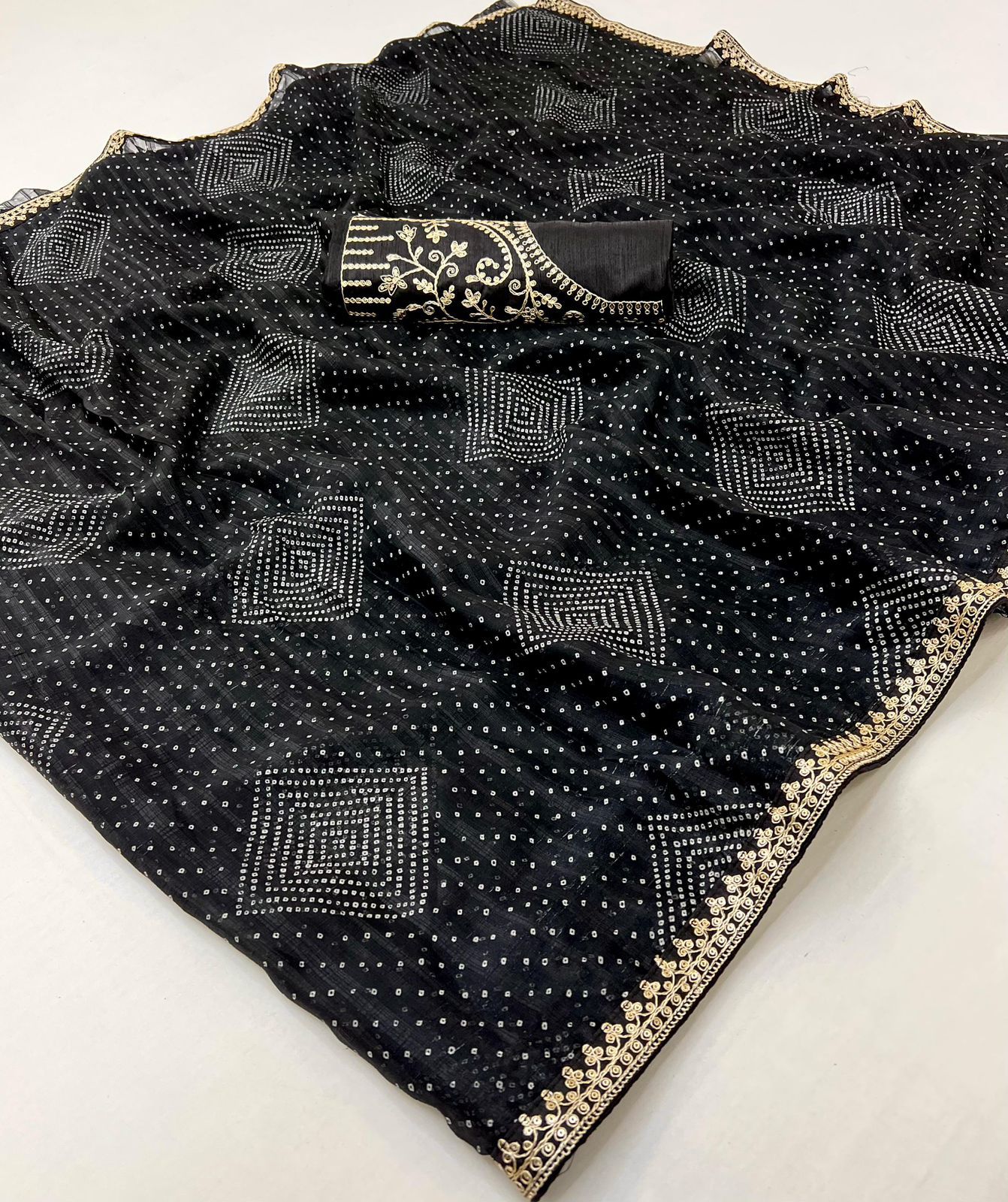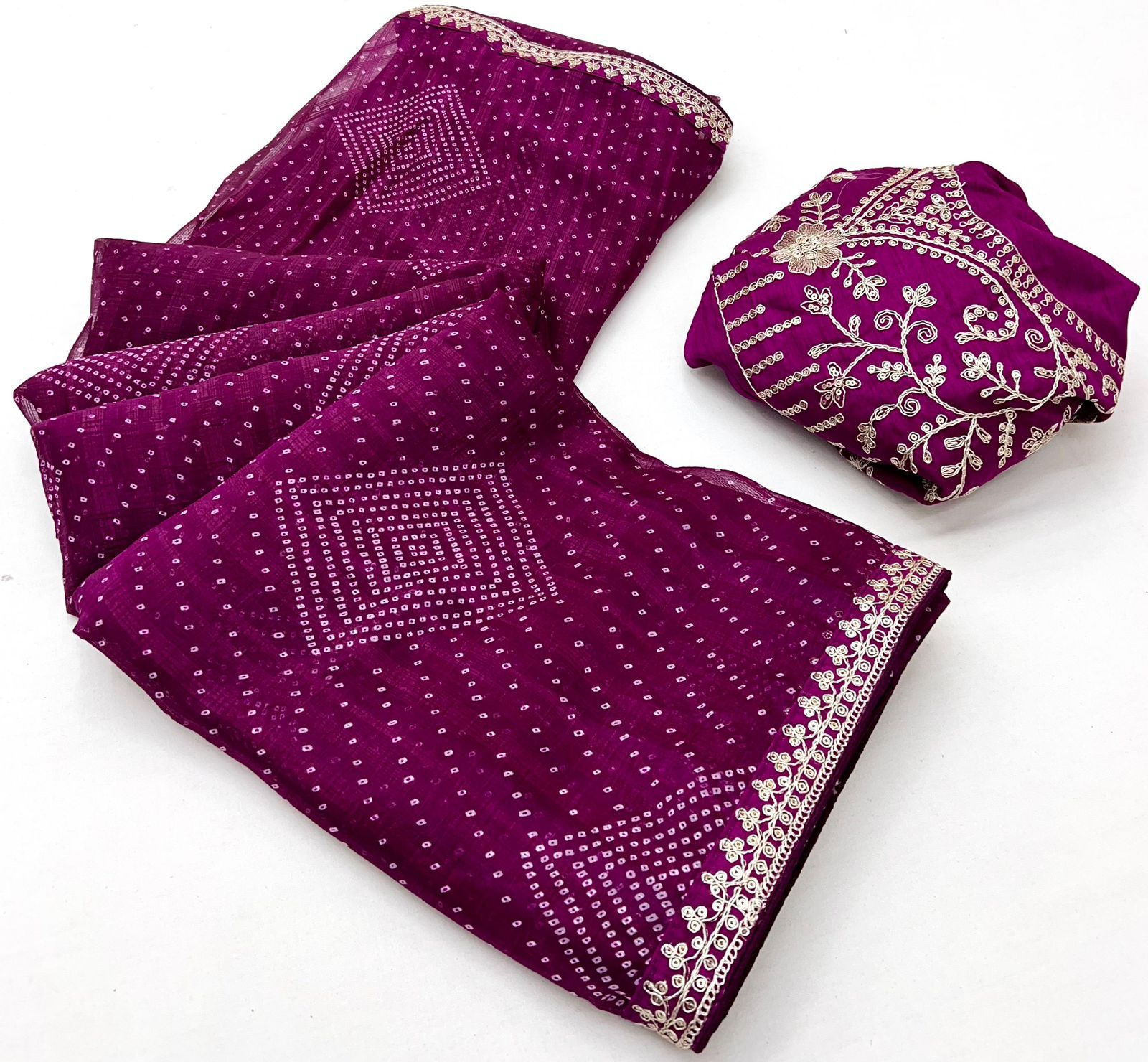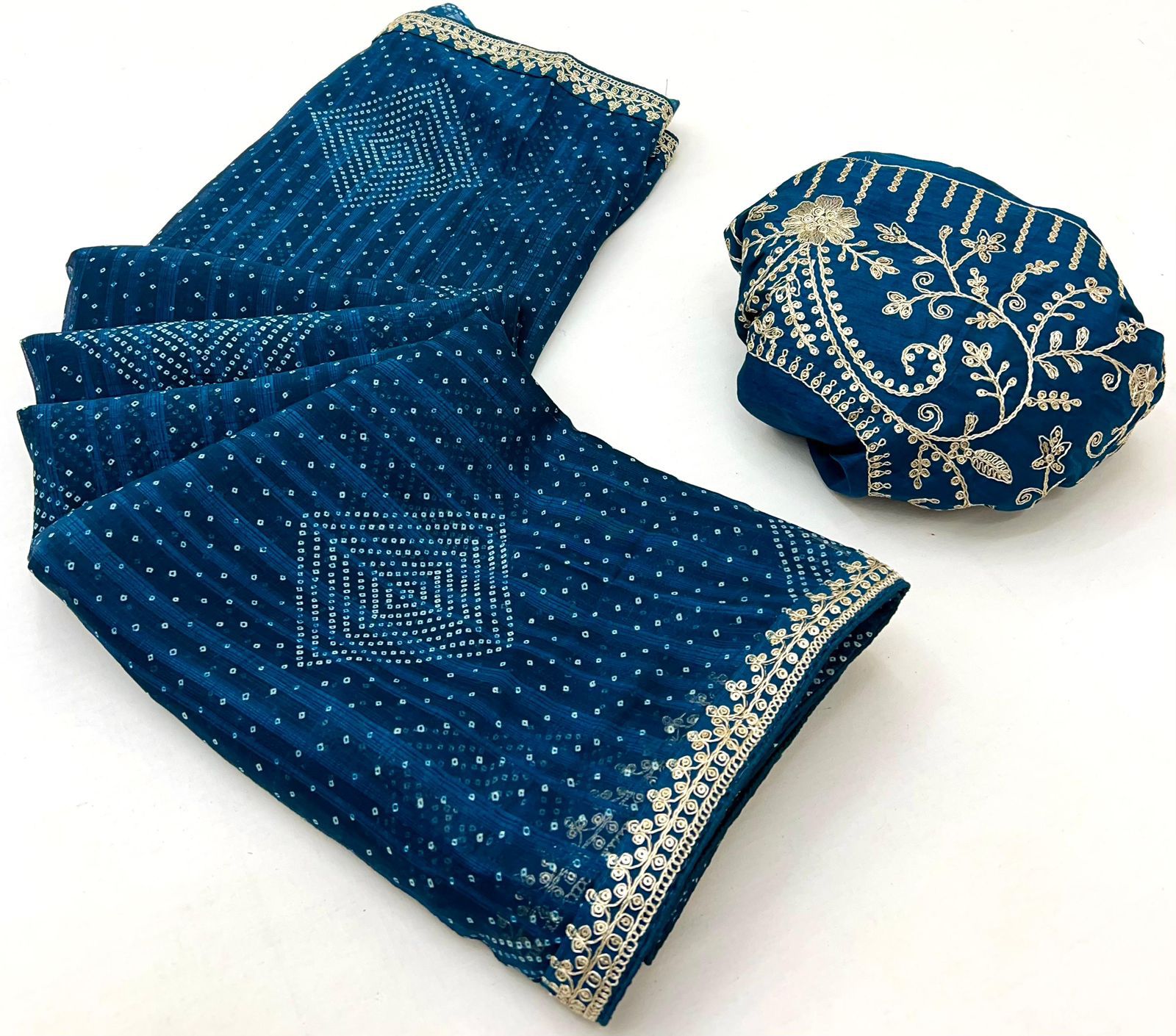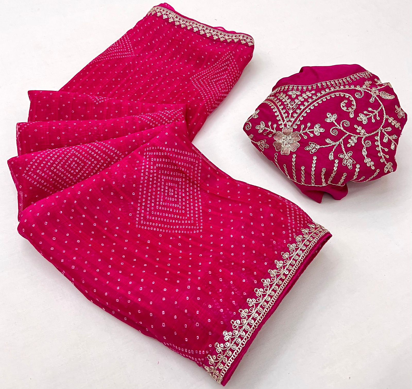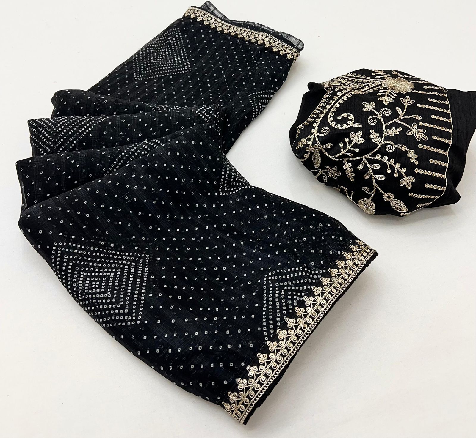 Soft Chiffon Fabric With Embroidery Sequence Coding Work Border And Work Blouse.