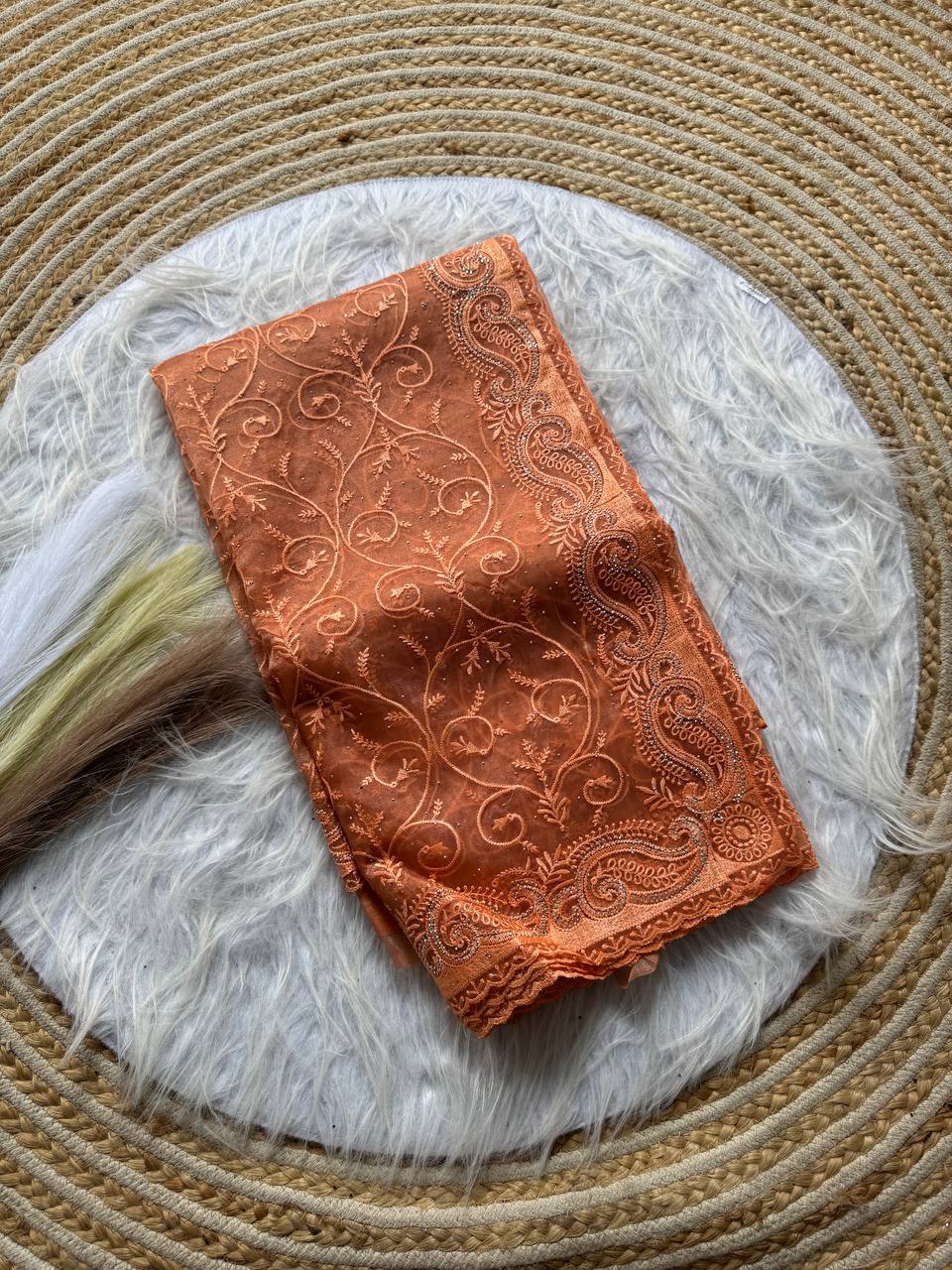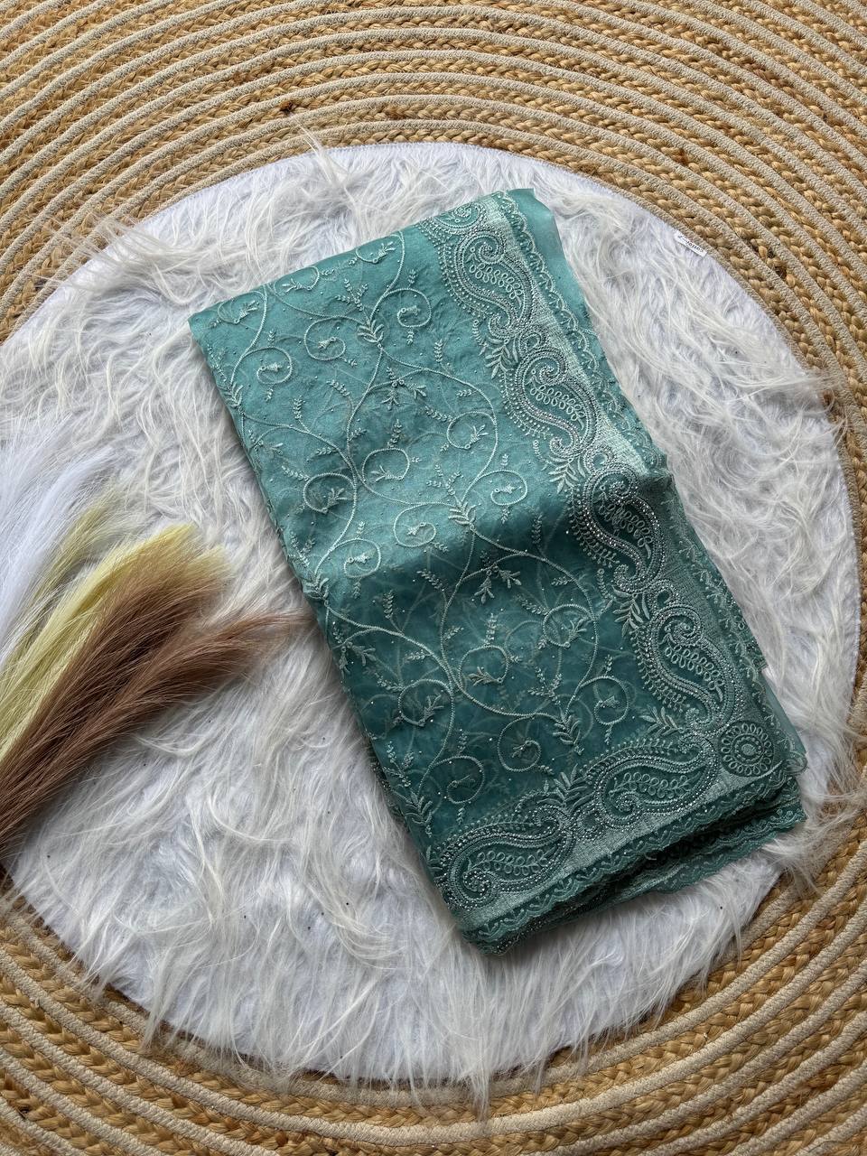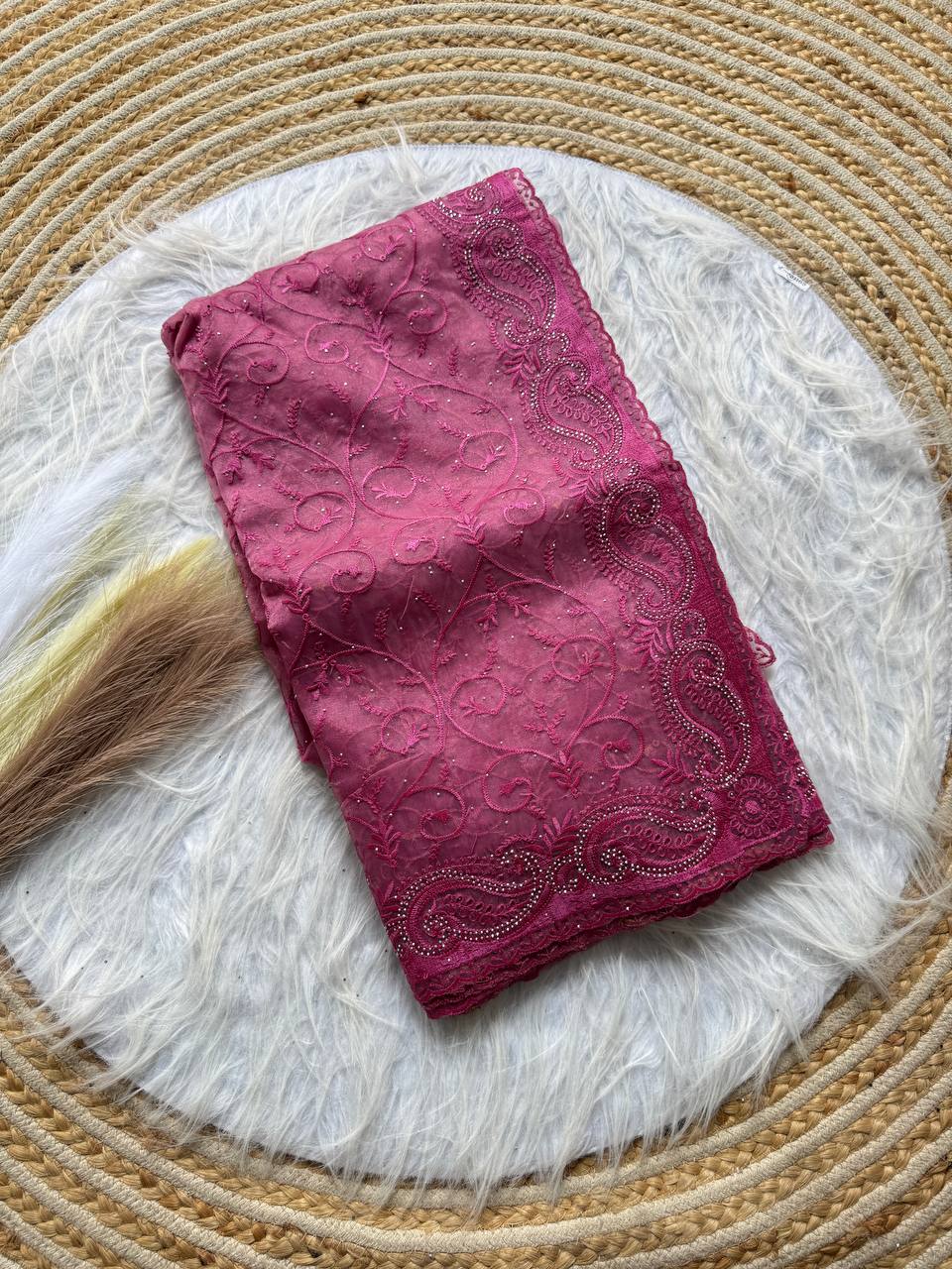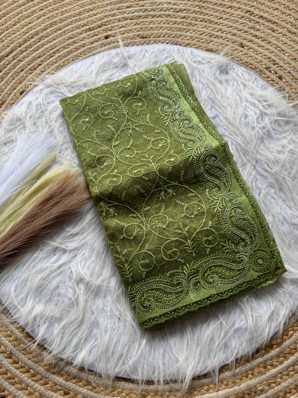 Pure Organza Silk With Shiny Fabric In A Solid Color With Embroidery Viscose Thread & Hotflix Diamond Work In Saree. Paired With Work Organza Blouse.