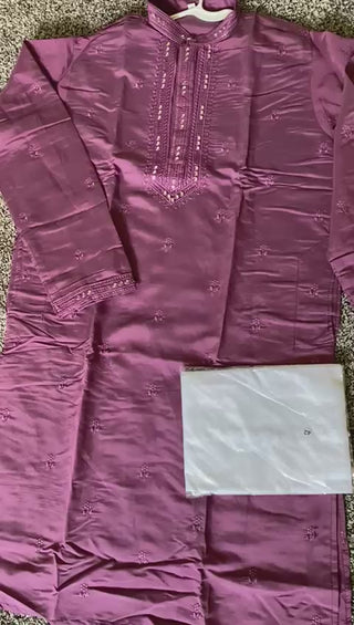 1-4 Days Delivery! Varman Indian Men Kurta Pyjama Ready to Wear Viscose Silk With Embroidery Sequence Work Party Wear, Listing ID: PRE9898392846618