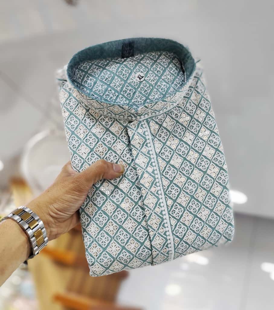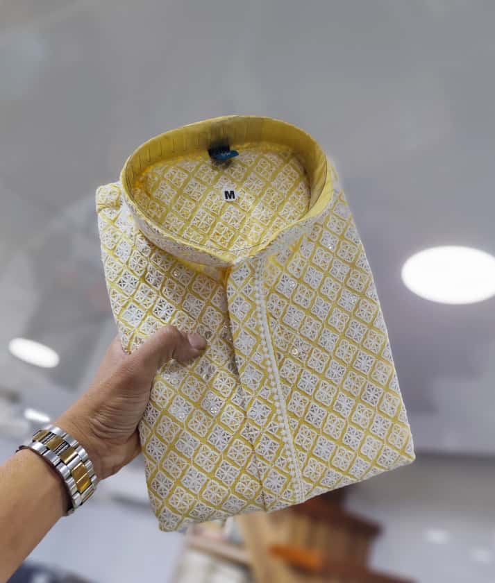 Look dapper in our Men Kurta & Chudidar Pyjama Set, designed to elevate your ethnic wear collection! The Heavy Rayon Kurta features exquisite Lucknowi work and Mate Sequence, while the Semi Cotton Chudidar Pant offers practicality with its pockets on both sides and elastic waist. Available in sizes M to 3XL and four stylish colors - Blue, Purple, White, and Yellow, this set is perfect for any special occasion. Whether you prefer a bold look with Purple or a classic style with Blue, our Men Kurta & Chudidar Pyjama Set is a versatile and trendy choice for men who appreciate traditional yet modern fashion.