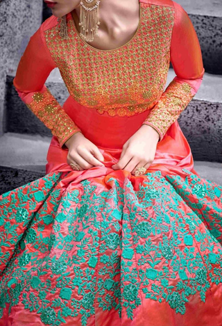 2-4 Days Delivery! HotAdy Pure Georgette top and Santoon bottom gown with Embroidery Work, Listing ID: 9977103647002